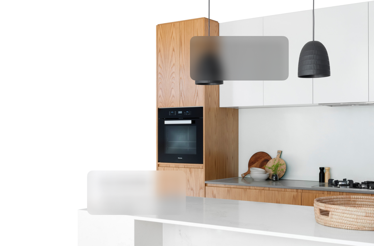 Фасады кухни выполнены из шпона дуба, для экологичного и антиаллергенного воздействия. Ручки из кожи сшиты под заказ по индивидуальному крою, с прострочкой нитью медного цвета